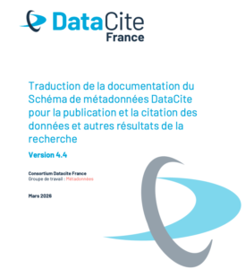 Le consortium français de DataCite, porté par l’Inist-CNRS, met à disposition un nouveau document : La traduction française de la documentation du Schéma de métadonnées DataCite pour la publication et la citation des données et autres résultats de la recherche (version 4.4)